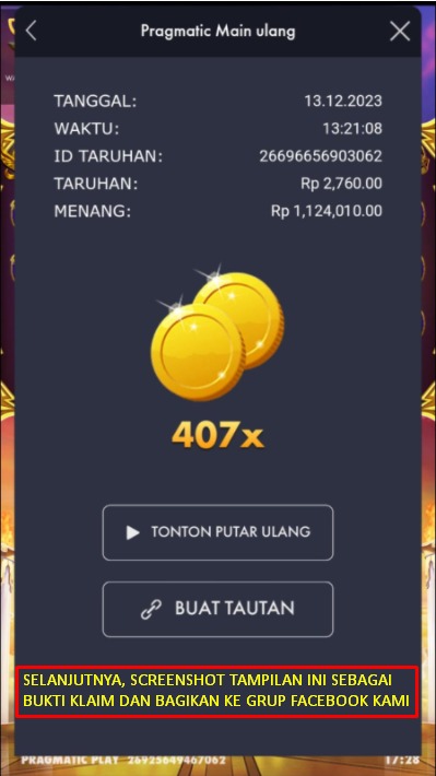 Share Screenshot Kemenangan & Share Link Putar Ulang kemenangan posting di grup