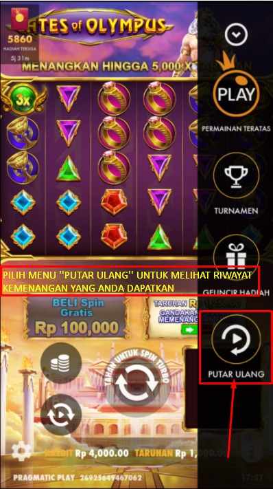 CARA MENDAPATKAN BUKTI UNTUK KLAIM BONUS FREESPIN (PRAGMATIC PLAY)